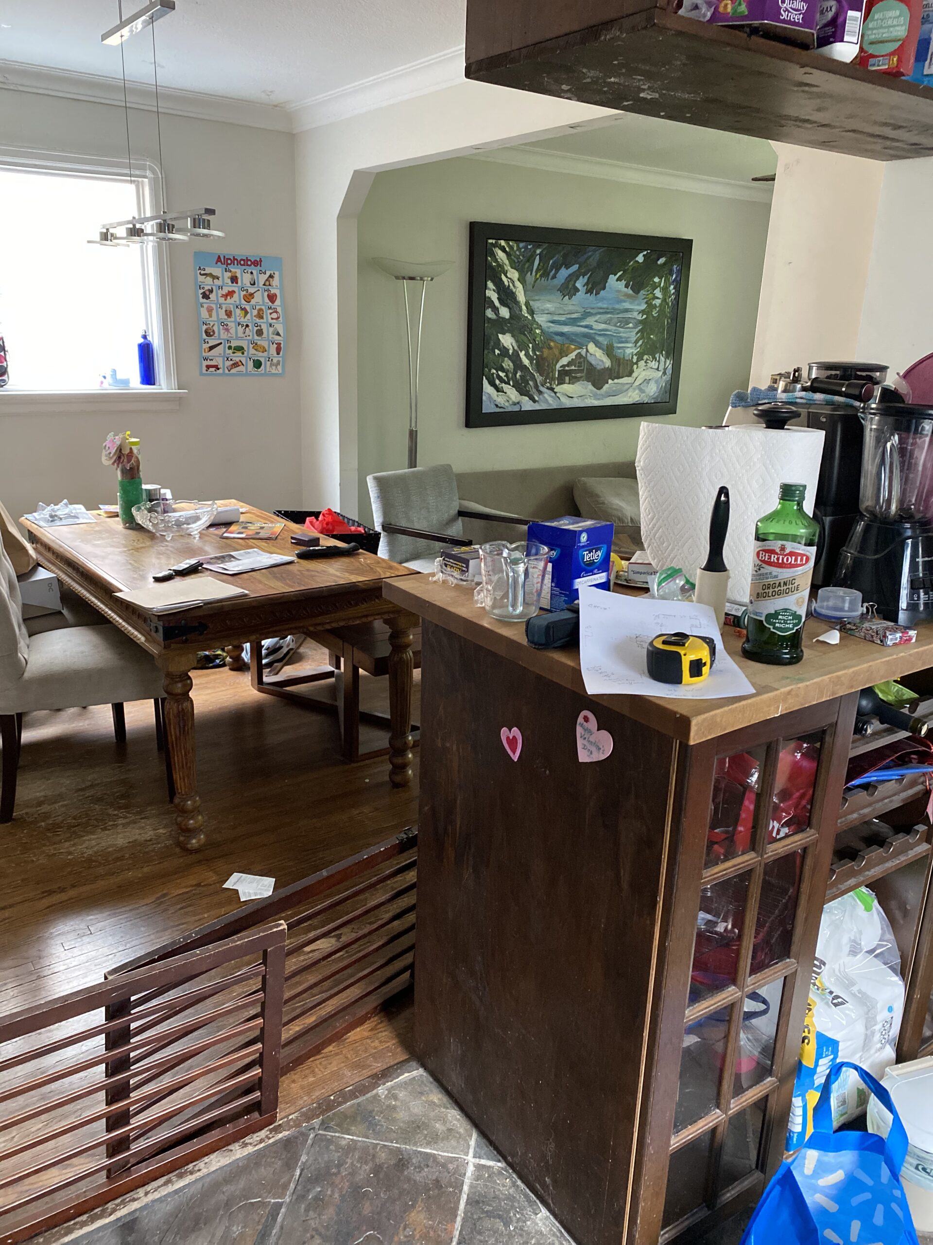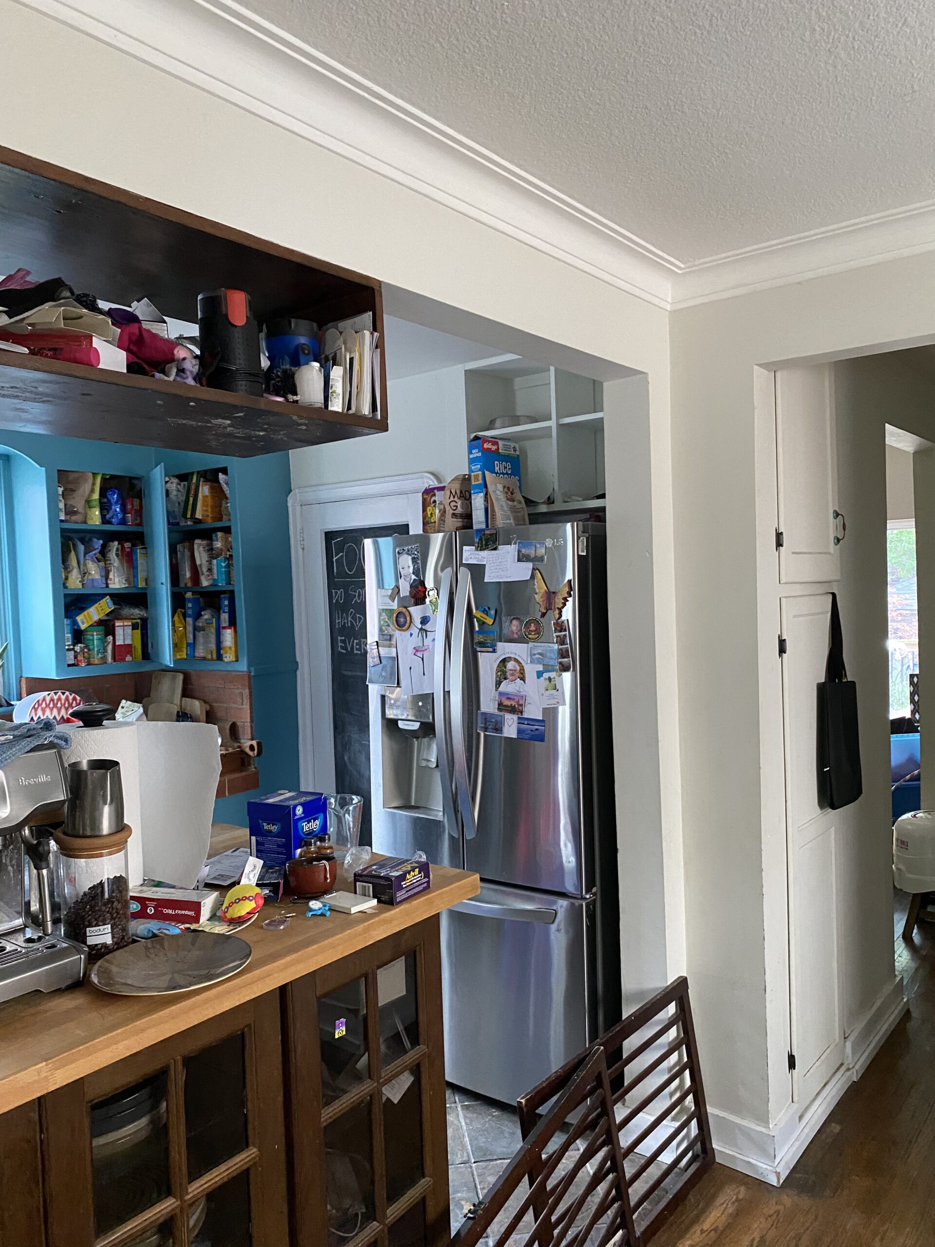 This comprehensive kitchen renovation by EXEURBAN is a stunning example of how architectural planning transforms outdated spaces into modern, functional masterpieces. The "before" images reveal a cluttered, segmented kitchen with dated blue cabinetry, mismatched countertops, and an obstructing overhead shelf.